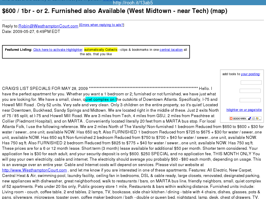 Highlights on atlanta.craigslist.org/apa/1192124715.html :: Rooh it - Collection-new ::