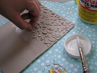 2) Stick the pieces on more cardboard