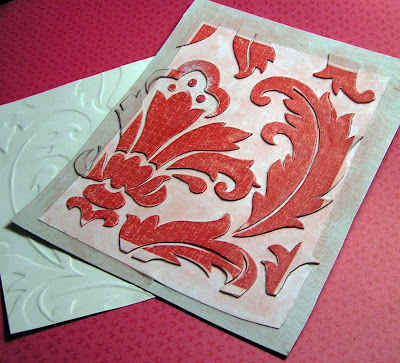 ...Die cut 2 thinner ones & layer on top of each other to get the thickness needed to emboss it. One of my ingenious readers suggested layering the shapes (so that a little one is on top of a larger one & you'd get variations in levels.) I looked & looked for your email to credit you with the idea, but couldn't find it. I'm SO sorry! :O)