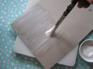 2) Let the adhesive dry (Sealing with Mod Podge will prevent the paper binding to the cardboard, but it needs to dry so the paper won't stick---hence for this step it's not necessary. You just wanna check the impression or embossing your test piece makes...)